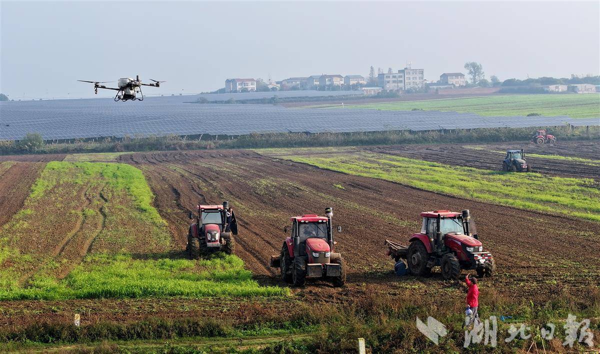 11月4日,位于襄阳市香州区古邑镇的绿谷丰现代农业种植专业合作社内,机器轰鸣,10台旋播拖拉机、3架无人机撒种、1架撒肥机撒肥。合作社克服了长期降雨造成的土壤墒情高的问题,及时播种了冬小麦。 9月以来持续阴雨天气,给襄阳市秋收和播种工作带来了不利影响。秋粮收获后,各种植大户积极挖沟排水、晾干水分,因地制宜科学精准送进农机具,确定秋播攻坚战,坚定来年“丰收”信心。 。 11月4日,襄阳市香洲区古邑镇鲁谷丰现代农业种植专业合作社机械设备顺利上线。划桨,许多农机争先恐后地播种冬小麦。 11月4日,襄阳市香州区古邑镇鲁谷丰现代农业种植专业合作社的机械轰鸣,许多农机争先恐后地播种冬小麦。