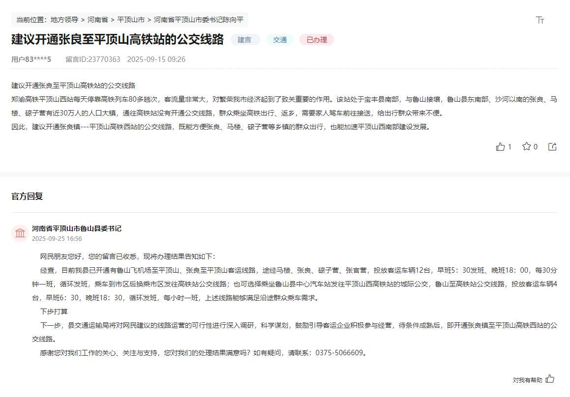 随着高速铁路网络的扩展,如何有效地连接脊柱网络上的交通端是改善居民的旅行体验并让高速铁路股息对更多城市和乡村居民的关键?最近,来自Pingdingshan,Henan的网民和地方政府的积极反应向我们展示了便利运输服务的温度和准确性。消息屏幕截图“ Zhangligang,Malou和Liziyy人口近30万。最近,一个网民担心他的Homeanglang发展到Shanxi高速火车站。 Netizen在他的消息中承认,Shanxi车站的Zhengzhou-Chongqing高速铁路每天停在80多列高速火车上,有大量的乘客流动,在Prospe中发挥了重要作用当地经济的难题。但是,对于Zhangligang,Malou和Lushan县东南部和Shahe南部的Chiziyy等城镇中的人们来说,这并不令人不安。 “一家人必须开车把他们捡起来,使忙碌的人旅行。”消息指出,潘丁斯汉西站位于鲍云县的南部和卢山边境。 Lushan县西南部的城镇人口很大,缺乏直接通往高速火车站的公共汽车路线,而高速火车站则是分享高速发展股利的全部人群。网民建议:“从Zhangliang Town到Pingdingshan West Station的一条公交路线不仅会促进人们的旅行,而且还可以加快西南平民的建设和发展。”这一建议反映了城市化过程中公共交通服务的供求平衡。 “最后一英里”问题如何奥尔夫?在收到网民的信息后,卢山县党委员会非常重视它,并立即安排了 - 部门进行调查并进行调查。响应首先引入了现有的交通保修措施:目前,县已开通了一条从Lushan机场到Pingdingshan到Pingdingshan,Zhangligang到Pingdingshan,穿过Malou,Zhangligang,Ziyyying和Zhanggyanying,以及部署12名乘用车。这些路线从上午5:30和下午18:00开始。他们从每30分钟开始30分钟开始。转变以圆形方式发送。人们可以乘公共汽车去城市,然后搬到公共汽车路线到达高速火车站。此外,公众还可以从Lushan County Central Bus Station选择城市间巴士到Pinding Shanxi高速火车站。这条线有4辆乘用车,早晨轮班为6:30,而晚上则是18:30,而周期则转移了一个小时。 “上述路线可以满足人们在此过程中的基本需求,但他们还承认,需要改善直接访问的舒适度。”为了回应蒙卡(Mungkah)网民通过的直接途径,Lushan县党委员会发出了积极的回应:在下一步中,该县的运输局将对网民提出的路线运营,开发科学计划的可行性,开发科学计划,并鼓励和指导客运公司积极参与运营进行深入研究。回应应答应:条件成熟后,从Zhanglang镇到Pingdingshan高速西站的公交路线将开放。该声明为当地居民提供了希望。公共交通是城市和乡村之间的联系,也是人们生计和福祉的重要体现。从一条消息开始,卢山县运输部不仅对大规模骗局做出回应CERNS,Butlo迈出了重要的一步,通过启动可能的调查来改善区域运输网络。